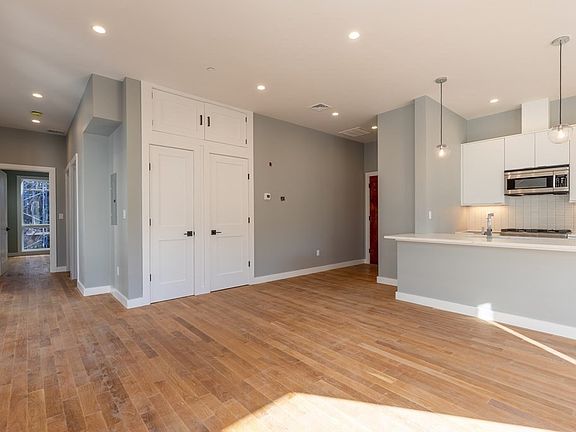 BRAND NEW, luxurious, and spacious unit. Open floor plan with oak hardwood floors, recessed lighting, custom Eclipse kitchen cabinetry, SS Fisher & Paykel appliances, pendant lights over island, quartz counters, & designer Ann Sacks backsplash tile. Private covered balcony off kitchen/dining area and shared back patio. Master bedroom w/ dual closets, barn door entry to bath w/ marble tile floor and stand up shower, custom Eclipse vanity, glass doors and rain shower feature. Second bedroom perfect for home office or gym! The second bath has a jetted soaking tub with glass shower doors, custom Eclipse vanity, and LED-backlit mirror. HVAC in-unit for heating & cooling with Navien on-demand water heater. Washer/gas dryer hookups in unit. Video intercom & programmable thermostat. Less than a 1/2 mile to Sam Adams Brewery, Stonybrook Orange Line Train Station, & Southwest Corridor Park. Walk-up entry shared with only 3 other units includes one covered compact parking space. Other units avail