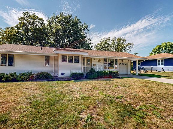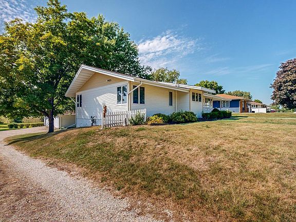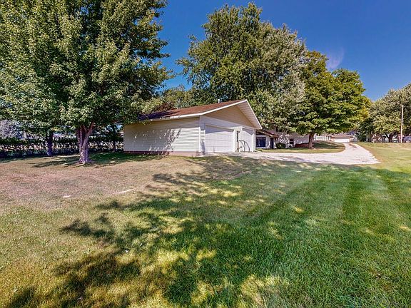 Great location for this large ranch on quiet street close to school and no backyard neighbors. 1/2 acre lot, 4-car garage (1 attached has 276 sq. ft. and 3-car detached has 1080 sq. ft.) Main floor includes large living/dining room with vaulted ceilings, kitchen w/center island, full bath and 3 bedrooms. Lower level has a family room, full bath, d/o(4th bedroom), updated kitchen and dining and walks out to a sunroom with air conditioning. The large yard is ideal for kids to play or to entertain. Home has central air with hot water baseboard heat.