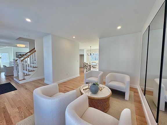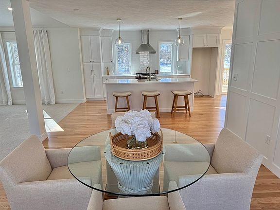 Incredible new construction open-concept colonial features 3 bedrooms, 2.5 baths, an office, and a versatile flex room. The elegant kitchen boasts quartz countertops, stainless steel appliances, a subway tile backsplash to the ceiling, and designer pendants. The kitchenette, with an 8-foot slider, opens to a deck, backyard, and serene water views. The dining room features a stylish accent wall and flows into a spacious 22 x 22 family room with a vaulted ceiling, recessed LED lighting, and a gas fireplace. The primary suite includes a tray ceiling, 4-piece bath with a double quartz vanity, and a walk-in closet. The office offers a built-in quartz desk, while the mudroom has a bench, cubbies, tile flooring, and hardwood stairs leading to a glass French door. Great family friendly neighborhood, walk or bike to downtown restaurants and shops. Just minutes to RTE 2, and I-495. Perfect for entertaining, relaxing, and creating lasting memories! Showings begin at Open House 2/1, 11 am - 1 pm.