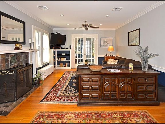 Built in 1842 this Gothic Greek Revival Cottage was originally part of the Samuel W. Rodman Estate, located west of the property. This home offers 4 bedrooms and 1.5 baths with 2,428 square feet of living space. The spacious living room has a fireplace, hardwood floors and french doors leading to a sunroom with access to the backyard. The formal dinning room has custom built-ins. The kitchen has a butcher block center island with entry leading to backyard. The house has high ceilings, hardwood floors throughout and many architectural details. Upgrades include a new heating system, new windows and updated baths. Off Street parking with a fenced in yard. Located within the County Street National Register District surrounded by period homes dating from the Whaling era. Walk to downtown, shops, restaurants and museums.