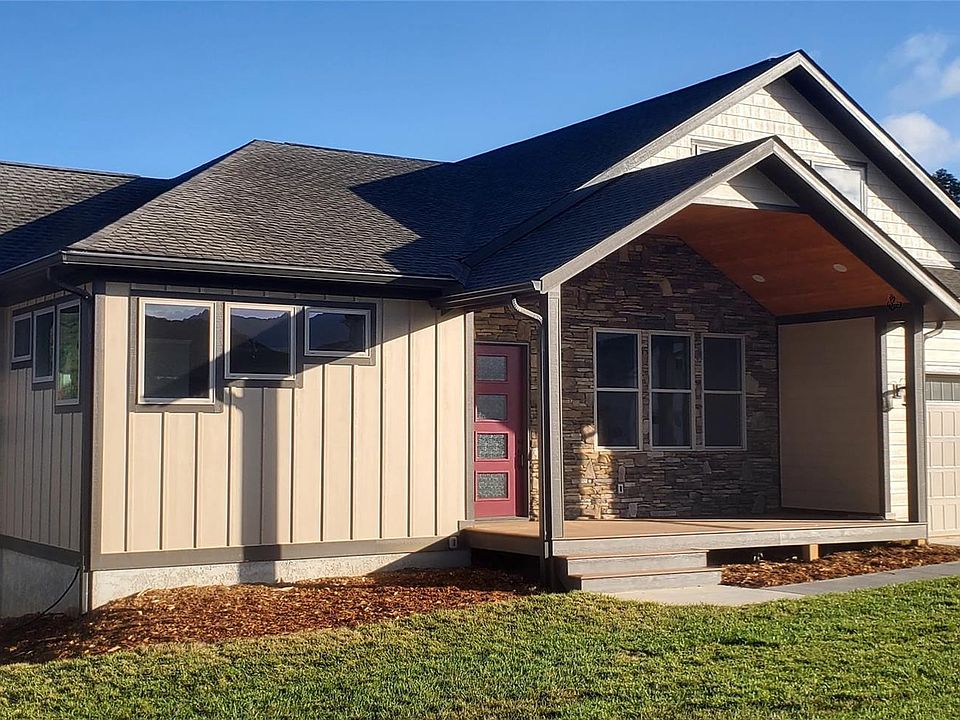 - Cedar Shake, Fiber Cement, Stone Veneer