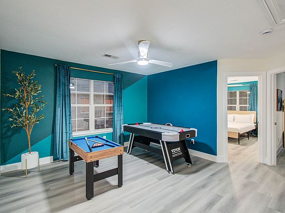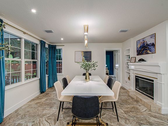 This stylish dining room offers the perfect blend of homey warmth and restaurant chic! The beautiful teal curtains pair perfectly with the gold accents to offer you an elevated dining experience. Grab a seat and enjoy a tasty meal with those you're gathered with!