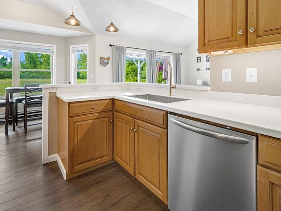 This move-in-ready 3 bed, 2 bath ranch is one-floor living at its best! Constructed in 2007 on 2.62 private acres, this contemporary home boasts a welcoming and bright open floor plan. The beautifully updated kitchen, with newer appliances and solid-state counters, flows easily into the living and dining rooms. New flooring throughout transitions effortlessly to each space. The many windows provide both abundant natural light and gorgeous nature views. The oversized primary bedroom includes an en suite bathroom for added privacy. The back patio looks out over a tranquil backyard and provides perfect space for relaxing or entertaining. One car attached garage and large driveway to park a trailer or extra vehicles. Short drive to Cornell and Downtown Ithaca. Lansing Schools.