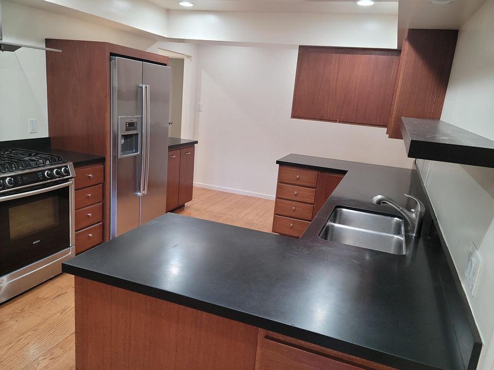 Nestled at the end of a private cul-de-sac in charming Ladera, Portola Valley. Designed by Joseph Allen Stein. Backs up to open space with a gorgeous back and a private front yard. Spacious and open floor plan. New paint, light fixtures, wood flooring etc. Light and airy with large skylights, walls of windows, Wooden French doors, double pane windows, etc. Back gardenincludes a waterfall, deck and patio. Gardener included. Ideal location is in the prestigious Las Lomitas School District with a bus stop at the end of the block. Easy access to the Ladera Shopping Center, and Ladera Community Center with pool, play area and tennis courts. Take Alpine Road exit from Hwy 280. Convenient access to downtown Menlo Park, Palo Alto, Stanford University, and hiking/biking trails. No cats please. E mail only, with your interest in the beginning please.