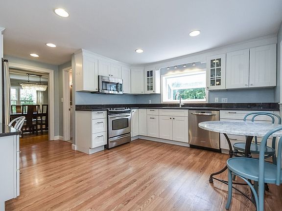 A Commuters Dream! Within minutes to Eliot and Waban Stations (D-line) this impeccable home is a pleasure to come home to. Gorgeous living room with fireplace, dining room open to heated sun room overlooking the lovely manicured grounds. Updated kitchen with white cabinets, black granite counter tops, stainless appliances, and built-in desk. Updated half bath finishes off the first floor. Second floor boasts three spacious bedrooms, a nursery or home office and full bath. Finished lower level with flexible floor plan offers full bath, an exercise room, walkout family room/Au Pair suite with built-ins, wall to wall carpet, storage, laundry and a sink for projects or arts & crafts. Detached two-car garage with new automatic door opener. Patio with steps down to level yard and play structure. Many updates including 6 zones Mitsubishi split air system, new dishwasher, recessed lighting and more! Move in condition! Minutes to routes 9 and 128. Desirable Angier School district. .