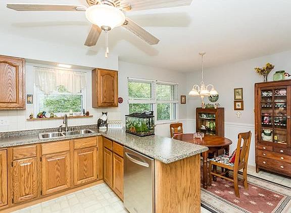 Welcome home to 35 Anawood Dr! This adorable ranch boasts over 1,500 sq ft of finished living space! The living room features a triple window, updated flooring, and wainscoting. As you enter the kitchen/dining area, you will notice the updated flooring, view of the backyard, and plenty of counter space for the cook in your house! Down the hall, are 3 spacious bedrooms with hardwood flooring, and updated hall and master bathrooms. The downstairs has extra living space with a half bath, lots of storage, and fireplace. The utility room offers plenty of space for additional storage or gathering space. Also features a walkout basement to the large deck overlooking the private backyard!
