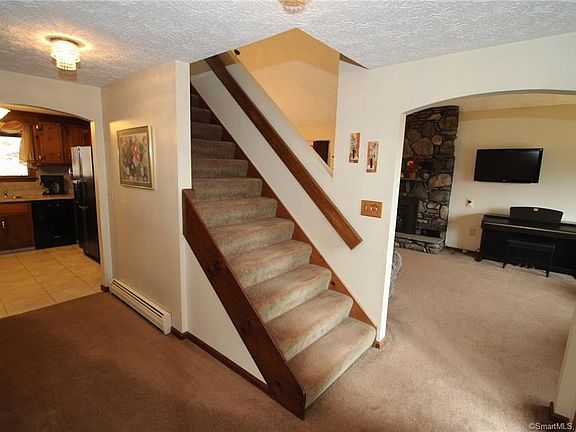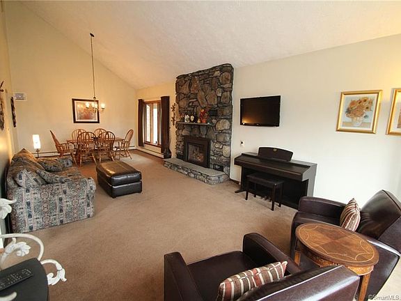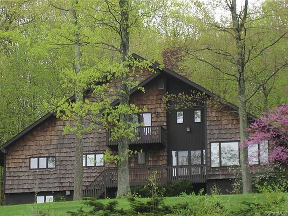 YOUR OWN COUNTRY CHALET IN TOLLAND Enjoy beautiful views and country living, just a few minutes to schools, UConn and the highway exit for great commuting to work and shopping areas. Featuring 3 bedrooms, 2 full baths, and an over-sized garage that could fit 3 to 4 cars. Very large first floor master with remodeled bathroom that includes a quartz counter-top, tile floor and new fixtures. Large family room off kitchen area overlooking backyard. Enjoy the views from the great room with gorgeous field-stone fireplace with propane insert and vaulted ceilings, this will be your favorite room. Kitchen is well equipped with plenty of counter and cabinet space and large breakfast area with access through sliders to a large covered deck. On the second floor you will find two additional large bedrooms (one with a private balcony, full bathroom and sitting area perfect for a study overlooking great room area. The unfinished basement has access to a large storage area, a second fireplace, laundry and garage area. Among the many features this home offers: a new architectural shingle roof in 2014, composite 26x12 partially covered deck, new retaining walls for access to backyard, new flooring in some rooms, newly refreshed landscaping. A long driveway and great curb appeal from the road, that allows privacy yet close to all the conveniences. A refreshingly different style home that has character and great curb appeal.