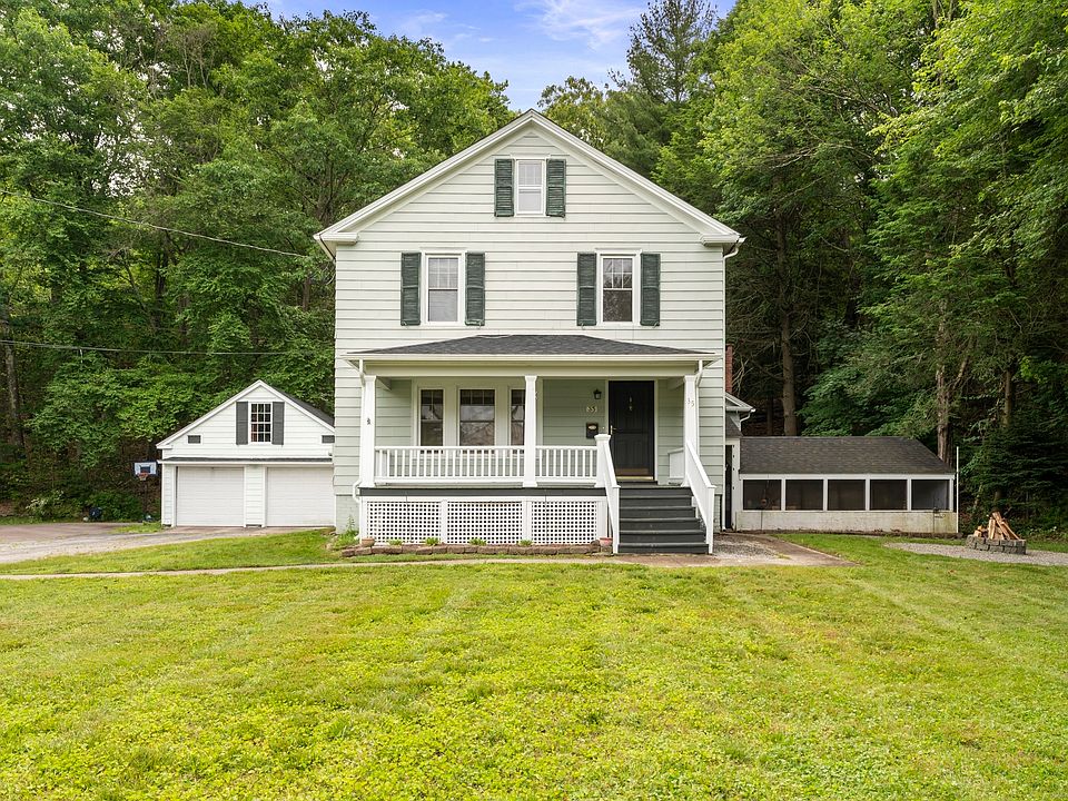 Welcome to 35 Arnold Place! A classic picket fence frames the front of the property leading you to a charming front porch - perfect for relaxing and enjoying your lovely, historic neighborhood! Inside, you'll appreciate that the wood floors have been beautifully refinished, along with a freshly painted interior. The living room has rustic charm with wood beams on the ceiling and leads into a formal dining room with molding details. The kitchen, with gas range and stainless refrigerator and dishwasher, seamlessly connects to a spacious family room. This room is your perfect gathering place. It is complete with a cozy fireplace which is flanked by built-in bookshelves and a cedar closet. A half bath is conveniently located on the main floor. You can access the backyard and detached 2 car garage through the mudroom/enclosed porch area off the family room. The garage has been recently painted and boasts ample storage space and a loft. An additional large screened in porch, off the kitchen area, allows for an added, covered entertaining space. Upstairs, there are 3 bedrooms and a large full bath. The bathroom offers a walk in closet/storage area. Other notable points that make this home a stand out, include; Central Air, 2- year old roof, a brand new boiler and a convenient Norwich location!