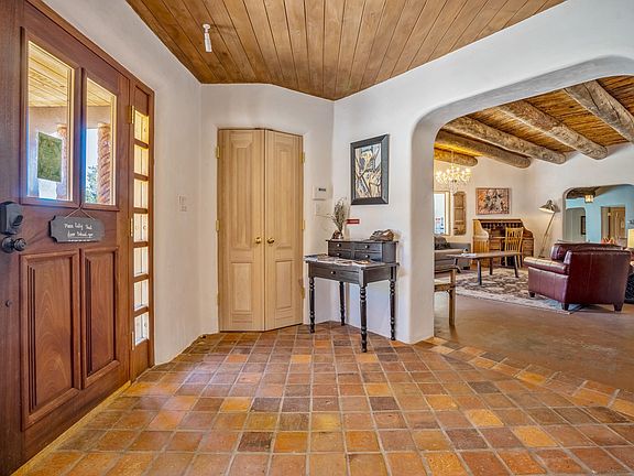 Substantial price improvement! Real Estate opportunities such as this present themselves once in a lifetime. This listing offers prospective buyers a chance to own a genuine Northern New Mexico manor. After entering the grounds, guests are welcomed by stunning views and subdued luxury, hidden in classic Northern New Mexican fashion. The foyer invites owners and guests into a grand central parlor with options in every direction. The indoor pool and hot tub can be seen at a glance to the left; commercial-grade kitchen with breakfast nook to the right, and suites, (an office for the property manager), dining rooms and the main hallway directly ahead. A covered outdoor breezeway draws visitors to over two-thousand square feet of guest house and plenty of room for parking of vehicles and classic cars in the many garage entrances. With the exception of stunning artistry on the walls and sacred Native American artifacts located throughout the home (and grounds) the furniture will convey with the listing. Listing agency has taken the liberty of providing photos and video footage that just manage to capture the scope, breadth and majesty this property exudes from every corner of its combined edifices (over 10,000 sf). The estate currently honors guests of the owners by appointment, as well as wedding parties and those fortunate enough to secure a room in this purposely hidden gem.
