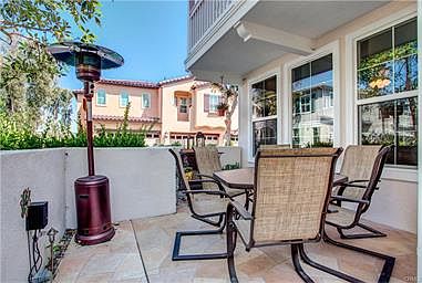 Don't miss this spacious Atherton Glen townhome with an end unit location and dual balconies! Light and open, this largest floor plan - Model C Hutchinson - includes crown molding, hardwood floors, and new carpet in the master bedroom. Large family room with cozy fireplace and separate dining room for entertaining. Stainless steel appliances, recessed lighting, white cabinetry, and plenty of storage. Morning sunlight fills the main floor where you can enjoy your coffee from the roomy breakfast nook which is adjacent to a private patio. The second floor boasts wall to wall plush carpet, and a separate laundry room for your convenience. Two additional bedrooms upstairs share one bathroom with dual sinks, with one of the secondary bedrooms having its own private balcony. The master suite with vaulted ceilings and a balcony, has ample room for a sitting area and the master bathroom doesn't disappoint with dual sinks and a lavish bath. New carpet has been recently installed in the Master. Ample parking plus an attached 2 car garage with direct access. Atherton Glen by Shea Homes is a highly sought out neighborhood with its central location, close proximity to schools, and its own private pool for its residences. Located in the Echo Ridge area of Ladera Ranch, this condo also features a balcony with viewing of the annual Ladera Ranch firework display.