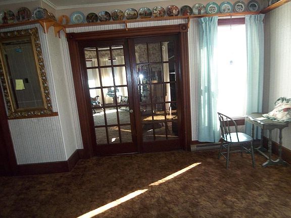 Large Victorian with 4 bedrooms and 2 full baths, plenty of room for the entire family or to host your holiday gatherings! Kitchen has plenty of cabinet space with breakfast bar. Beautiful French doors leading from the dining room into the living room. The natural woodwork grand staircase leads to the 3 bedrooms upstairs and full bath. All natural woodwork and wide pine floors under all the carpets! Come bring this grand lady back to her original look. Nice 3 season porch off the kitchen. Easy to show, call today!
