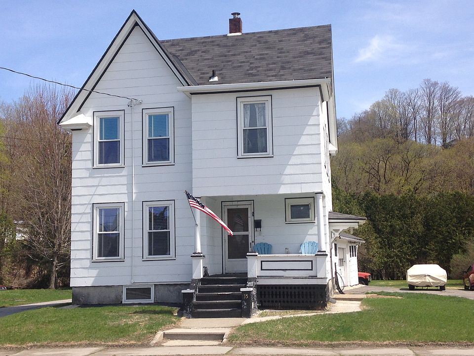 Description: two story colonial style single family home with detached three car garage. Bedrooms: 3 Lot Size: .31 acre +/- Square Feet: 528 peer floor, 1056 house Taxes: around 2400 Renovations: -New roof 7 years ago -New furnace and oil tank 5 years ago -New vinyl windows put in 5 years ago Back sun porch leads to bright kitchen. Open living room and dining room renovated to reveal original hardwood floors. Upstairs, 3 bedrooms and one bathroom. Master bedroom includes large walk-in closet. Convenient downtown location, beautiful backyard with privacy in the rear. with detached three bay garage. Nice neighbors surrounding home.
