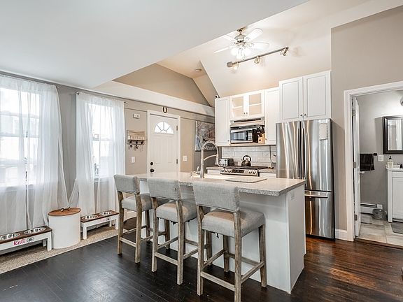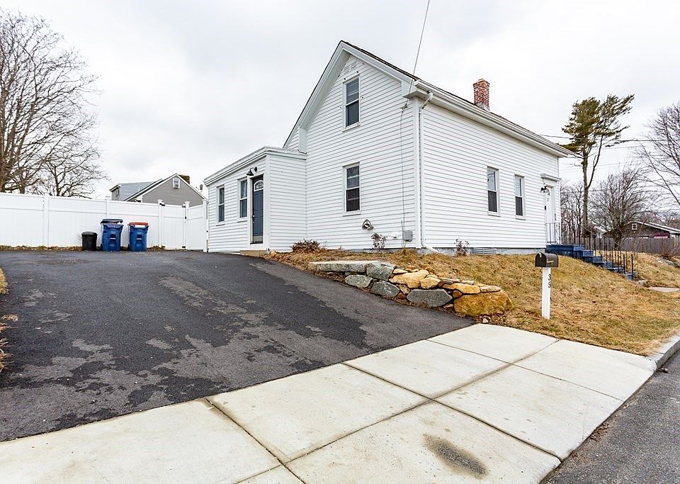 The perfect starter home within close proximity to Buttonwood Park. A modern open concept with vaulted ceilings, Hardwood floors, Kitchen with island, SS appliances, and built ins. There are two bedrooms on the first floor along with a nice renovated modern bath with tiled shower. A large master on the 2nd floor with great storage and additional space for a home office. Roof is newer and this home has a beautiful big backyard with patio and deck area, Home interior has been recently painted and is ready for you to bring your personal touches. Great corner lot with plenty of off street parking. Offer Deadline Sunday 2/26, 3 pm.