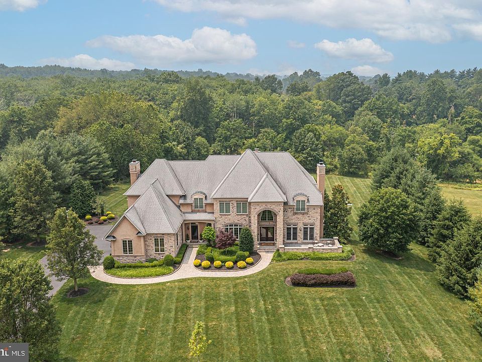 Custom built in an upscale enclave in Upper Makefield Township. Welcome to this beautifully open and thoughtfully designed home. Wonderful flow for entertaining, this home has it all! Spacious Gourmet Kitchen open to a lovely breakfast room, cozy Hearth Room and 2 story Gathering Room with stacked stone wood-burning fireplace and doors out to the bluestone terrace. A bonus flex space with walk-in closet, private Study highlighting a gas fireplace, custom built-ins and doors out to a private courtyard. The upper level offers 4 spacious bedrooms including the Main Suite with gas fireplace, sitting room, tray ceiling, 2 huge walk-in closets and dual vanity bath. The lower level is thoughtfully finished to include additional living space; billiards area, full bath, theater room, gym, bonus room and walk-out access allow this space to offer tremendous versatility. Additional amenities include beautiful cherry wood floors on the first level, custom moldings and millwork, an elevator to service all 3 levels, gorgeous lot backing to woods, outdoor fireplace and tremendous location for commuting with a short drive to the I-295 corridor and shopping and dining in downtown Newtown. Award winning Council Rock schools!