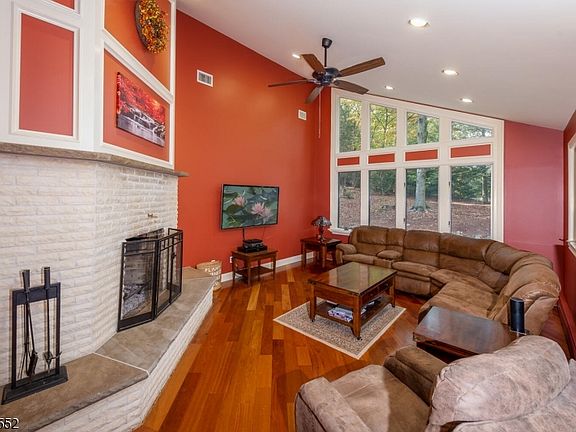 You'll feel surrounded by nature in this contractors custom built home boasting with pride of ownership and plenty of privacy. Upon entering into the foyer you will immediately feel at home with a sunk-in living rm and beautiful wood burning fireplace with gorgeous hardwood cherry floor. The eat-in kitchen is plenty big enough for large gatherings and has a slider to a massive deck, perfect for entertaining and it over looks a private pond. There is an additional formal dinning area plenty big enough to feed a crowd. The master has large windows that make you feel like you are sleeping in a forest, and it has its own private bath. Huge fully finished basement equipped with an additional large office space and laundry room. Don't miss this one, we don't see homes like this that often.