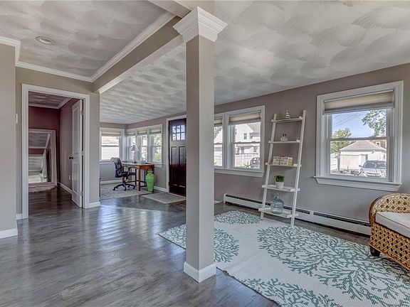 You must see the interior of this fully renovated, coastal beauty with peek-a-boo views of Narragansett Bay to fully appreciate how much it has to offer! Twenty-three windows fill over 1200 sq.ft of beautifully designed, open-concept living space with sunlight and lovely breezes off the water. The expansive floorplan features a new kitchen with granite and stainless, two generously sized bedrooms, a home office/sunroom with views, a huge 14x31 sq.ft living room that can easily double as open living/dining, first-floor laundry, and hardwoods throughout. Important mechanical improvements include a new roof, high-efficiency Navien gas heat & H20, vinyl siding and replacement windows. The partially finished lower-level offers expansion potential and great storage space. Bellman Ave. is a popular walking/biking route to nearby Conimicut Point Park which offers a local beach, gorgeous coastline views, "Yoga at The Point", and more. To be this close to the water without paying flood insurance is rare! Take advantage of this affordable opportunity in a quickly appreciating area experiencing significant revitalization, a strong neighborhood association, and new businesses including the popular Sweet Indulgence moving in before prices go up!