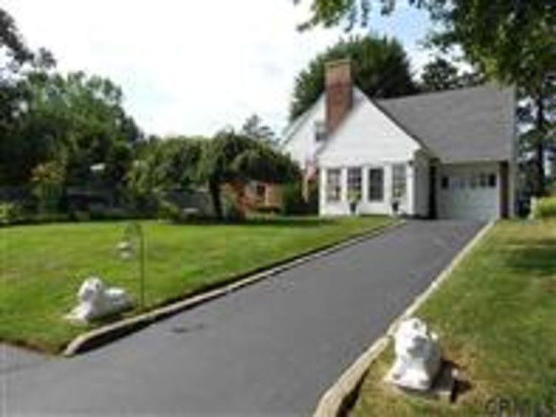 Come and see this charming brick cape in desirable Albany Country Estates. Large living room with wood burning fireplace, hardwood floors thru-out, large bedrooms with deep closets, bay window in kitchen overlooking the beautiful landscaped yard. "olde time" neighborhood with tree lined streets, but so close to everything. Chandelier in dining rm and garden statuary not included. Call Kathleen 518 428-9965