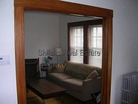 2 bedroom apartment on the first floor.Living room, dining room, one bathroom. Dishwasher, stove, refrig., washer, dryer, storage, two porches, off street parking available July 1. No pets, No smoking please. Tenant pays for oil heat. One year lease. Laundry in Unit - NO PETS - 2 parking Off street