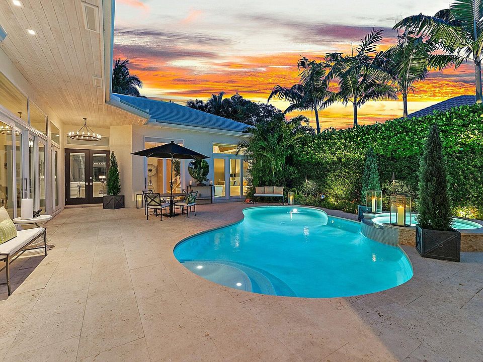 Experience this true gem of a home exuding serenity and tranquility bringing the outside in, in the desirable community of Ballenisles. 3 Bedroom, 3 Bath home including 2 bedrooms plus a den/office in the main house plus a one bedroom guest cottage, which sits looking out on the impressive courtyard & pool with organic 18 by 36 inch Coral stone decking. The home lives large as all rooms look out onto the 1700 square foot courtyard. Exquisite upscale, luxury upgrades and finishes throughout. You will be impressed by the modern, well crafted finishes displayed along with neutral and appealing decor which makes it easy to be able to add your very own touches to this jewel. The flooring is beautifully kept Travertine Marble in the majority of the living area which once again is looking out onto the beautiful pool area and yard. Amazing natural light all day spans over the entire home from morning till night. The backyard is breathtaking with well designed Chicago brick patios and has the most desirable Southern exposure, which you get to view and take in from your living and dining rooms everyday. The view will constantly surprise you! Perfect if you enjoy watching birds of all kinds. The kitchen window is facing East, the perfect way to wake up, start your day, and enjoy your coffee. The Primary Suite offers a large bedroom with tray ceiling, electric remote controlled blinds w/ black outs plus sheer shade as does every room in the home. Primary bath boasts quartz mother of pearl counters, a luxury smart toilet and 2 walk-in custom closets. This home is completely private which is a lot of fun! You can move right into this beautiful home where almost everything has been recently replaced. Updates include the new roof, new gutters and downspouts which lead into new drainage system surrounding the entire home, superior quality impact windows and hurricane rated garage door, a whole house generator, Water Filtration System, Sonos Speakers throughout, 3 AC units replaced recently, plus new A/C in over sized 599 sq. foot renovated garage, epoxy floors, built ins etc, and so much more. New pool decking and pool equipment for the low maintenance Saltwater Pool. Magnificent exterior artistically designed lighting which transforms the property and pool area into a work of art every evening. The sophisticated design extends into the 1/4 acre well manicured yet natural gardens to the inviting outdoor magical spaces, creating an enchanting ambiance. Schedule your private showing today. This home is truly worth seeing and experiencing. Please call for more details.