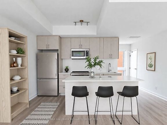 Brand new. Never lived in. A light-filled corner suite in Birchcliff's newest design-forward townhome collection.This three-bedroom residence blends urban sophistication with coastal calm - steps from the lake, the Bluffs, and the charm of Kingston Road Village. The open-concept main level feels expansive and airy, anchored by floor-to-ceiling windows and a kitchen designed for both style and substance. Quartz counters, integrated stainless appliances, and a generous breakfast bar set the stage for easy entertaining and everyday living. Upstairs, the bedrooms offer privacy and proportion, including a serene primary suite with its own three-piece ensuite and floor to ceiling windows. The private rooftop terrace is the showstopper - with unobstructed views of Lake Ontario, it's a space that turns sunsets into rituals. Located in the heart of Birch Cliff Village - a quiet, connected pocket surrounded by parks, schools, cafes, and the shoreline trails below. A rare opportunity to lease something truly new - design, light, and lifestyle all in one place.