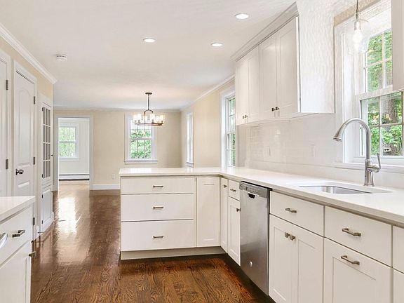 Newly remodeled charming three bedroom cape located on a flat lot in a quiet neighborhood with great views of Lake Attitash. Nice large private over-sized lot for summer BBQ's and entertaining. There is a deeded easement across the street for a private dock. This house has a first floor master, 3/4 Jack and Jill bath and first floor laundry. The newly remodeled kitchen has all new stainless appliances and quartz counter tops. Two very large bedrooms on the second floor with a full bath. One car attached garage. New roof, windows hardwood throughout, fresh paint inside and out! Close proximity to downtown Amesbury where you can enjoy some of the Northshore's best restaurants and chic shops. Great first home or for someone looking to downsize! Don't miss the opportunity to see this special home!