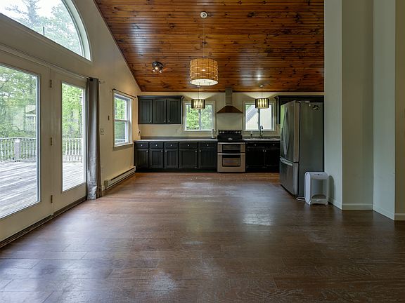 Always wanted a cozy little place surrounded by trees and privacy? Here it is! Adorable raised ranch sits on 2.71+/- acres nestled in the trees and located on a dead-end road and abutting conservation land. With just a bit of interior paint and some minor repairs to the expansive deck, this could be your own little slice of heaven. Beautiful tongue and groove wood cathedral ceilings. Room in the basement for future expansion if desired. Great two car garage with storage area above. Ample parking, level lot. The possibilities are endless! (The one photo with furniture, is virtually staged) Offer deadline 9pm Wednesday 6/4/25