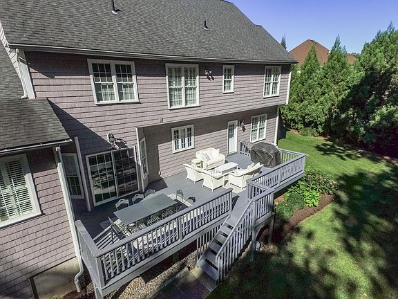 Spectacular like new Colonial built in 2006 on private tranquil cul-de-sac. Completely updated meticulous open floor plan with gleaming hardwood floors, vaulted ceilings and professional decorative color pallette. Special attention to details include premier organized closets, striking window shades, plantation shutters, raised wood panels & crown moldings. Impressive spacious eat in kitchen with granite counters, center island, new stainless steel appliances, large walk-in pantry, stunning casual dining area leading to capacious private deck backed by trees. Formal dining room complete with hardwood flooring, trey ceiling, crown moldings, custom panels & bay window which allows for an abundance of natural light. Elegant foyer with the "wow factor" leads into the graceful living room perfect for entertaining. Generous main level den combines custom built ins with stately shelving. Few steps up to the stylish family room which hosts vaulted ceilings, marble fireplace & palladium window. Sun drenched four season sunroom with french doors is currently used as a executive office. Upper level master bedroom with full luxurious bath, walk in closets & new carpeting. Guest bedrooms boasts a shared full bath and ample closet space. Unfinished lower level is great for additional storage. Magnificent ground level deck and sprawling lawn with mature gardens in wonderful serene location. Three car garage, extensive stone walls, central ac, sprinkler system & more. Must see to appreciate!