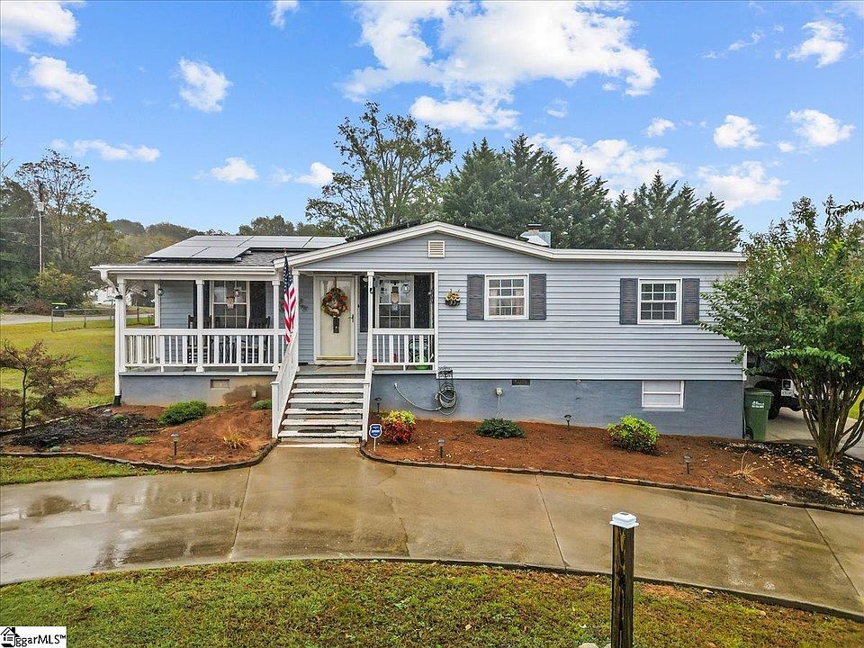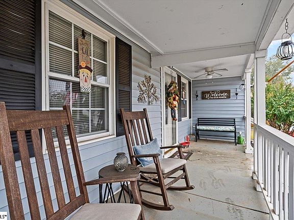 You will fall in love with this beautiful well taken care of home in the heart of Inman. Home is on a corner lot with a convenient circular driveway with plenty of parking also with an additional carport and garage in the back. This beauty is move-in ready, with well thought out updates. The huge front porch can be appreciated anytime of the year while looking out towards the charming street the home is on. As you enter the main living area you will love the luxury vinyl floors throughout most of the home. The dining room boasts tons of natural light as well. The beautiful updated kitchen has been completely reconfigured to accommodate everyone in the family. Countertops have also been updated and an island peninsula added for extra seating while the cook in the family can enjoy the space and updates in the kitchen. The master suite has been updated so it’s separated from the other bedrooms. There is a nice closet and the updated luxury en-suite has dual sinks and a rain shower head in the walk in luxury tiled shower. The second bedroom is a generous size and the third bedroom is currently a sitting room but can be used as a bedroom if needed. The additional bathroom shared by the two bedrooms is nicely updated as well. The basement can be accessed from inside the home or from outside. The finished area of the basement is currently used for storage and recreation. The unfinished part has a dehumidifier and has tons of space for storage as well. This lot is level and gives the option to have a nice garden if desired or to just enjoy pets in the fenced portion of the backyard. A short distance to downtown Inman and the interstate, you will love the small town charm Inman provides . Close enough to shops and restaurants but not in the city and no HOA. Don’t wait, this charming home will not last long.