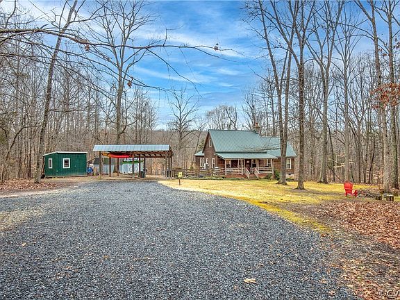 Welcome to the country life, where you will find your slice of peace and beauty surrounded by nature. This amazing retreat is nestled on 5 acres. Outside you will find 2 large sheds, a double covered carport, firepit, a great garden, newly planted cherry, apple and peach trees, grapevines, mushroom varieties, wild orchids and more. Inside you will appreciate all the charm that has been crafted. This home has vinyl windows, hardwoods, a newer metal roof, granite countertops, gas range, back splash and slide outs all through the kitchen. The great room and dining room share a beautiful stone fieplace that is warm and inviting. The great room also boast vaulted ceilings and opens to the florida room, which overlooks the private back yard. On the main floor you will also find the primary bedroom with walk in closet and the secondary bedroom. There is also a large bathroom on the main floor. As you go up the spiral staircase there is a nice size loft, which can be used for an office, extra bedoom or a cool hangout space. This home is only 3 miles from one of the very best floats on the James River. Other recent updates include newer well pump, water heater and whole house water filter.
