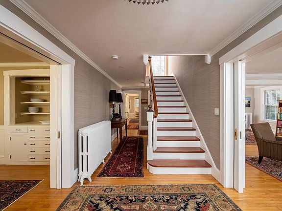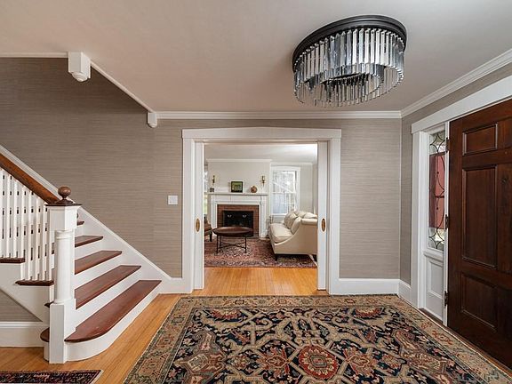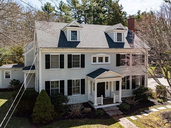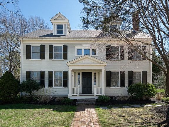 Stunning Colonial Revival sited on an acre lot was tastefully renovated to blend modern convenience without sacrificing the home's original charm. This imposing 4184 SF residence w/11 rooms, 4 BR & 3.5 baths boasts an exquisite interior w/elegant fireplaces, wood floors, classic trim, custom built-ins, grass cloth walls, butler's pantry & wet bar. Picturesque exterior is adorned by majestic trees, stonewalls, columned porches, patio w/room for dining & sprawling yard. 1st fl features chef's kitchen w/honed granite, cherry island, Viking gas cooktop, Subzero refrig & breakfast area that opens to FR. Study, DR, LR, powder rm & stylish foyer complete this level. 2nd fl incl fabulous Great Rm w/wall of windows, primary suite w/double closets, 2 add. bedrooms & family bath. On the upper level you will find the 4th BR w/sitting area or guest suite, bath & laundry. This special home in a superb location close to commuter rail is warm, comfortable & timeless. Come see the many fine features!