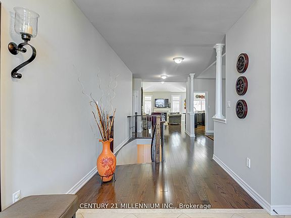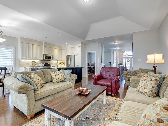 Caledon East Estate stone & brick bunglaow w/ a sprawling 2,615 sqft main flr w/ potential of 5,230 sqft of finished living space on quiet desirable street siding onto park & backing onto wooded tree lots, 3 bdrm 3 bath 3 car garage 6 car parking soaring 9 to 11 ft+ ceiling st-out & 2 separate entrances to the bsmt for multi generation family living, bsmt aprt, Rec rm or all the above. Custom front walkway/covered porch to spacious foyer, soaring smooth ceilings. Front family rm or executive office w/ 2 tiered windows, Cali shutters hrdwd flrs flow into the O/C layout, grand dining & great rm w/ vaulted 11ft+ ceilings, custom gas f/p & mantle. Dream entertainers custom kitch, marble island cntrs, granite rear counters, s/s appli, reverse osmosis filtration, Magic brand sliding dr w/o to composite deck & 17x35ft patio w/ quiet peaceful views of trees & woods. 6 zoned irrigation. 2 Queen sz bdrms w/ jack & jill 4pc bath King sz mstr retreat w/i closet, glass shower, soaker tub, Dbl sinks. 3 car Garage access w/ main flr laundry room. Massive bsmt w/ 2 sep staircases,1 from laundry rm for in-law/ bsmt aprtmt 2ndfrom homes centre stairs w/ 2 bsmt doors potential to create 3 sep living spaces, above grade windows