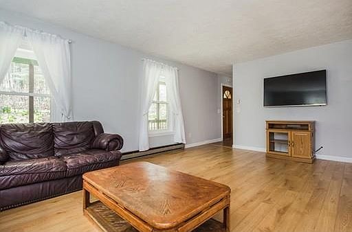 Best and Final Offers due Wed, May 15, by 5 PM with signed attached Multiple Offer Form to Listing Agent.. Experience pond front living with this charming 3 BR Cape with Farmers Porch in popular neighborhood with great highway access! Spacious main level has Living Room with stylish new laminate flooring, huge tiled eat-in combination Kitchen and Dining Room with cozy wood stove and tiled Guest Bath. Bright, cabinet packed Kitchen has beautiful quartz counters, big bay window and terrace doors to full length deck overlooking picturesque pond and surrounding nature! Second floor Master Bedroom with walk-in closet and two additional good sized Bedrooms plus tiled full Bath with heated floor! Relax in your lower level Family Room with wood stove, sliders to the outside and convenient laundry closet. All new second floor carpeting, garage under and huge storage shed. Special property!