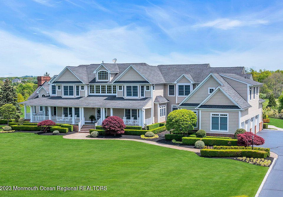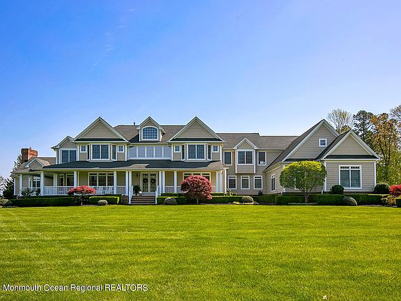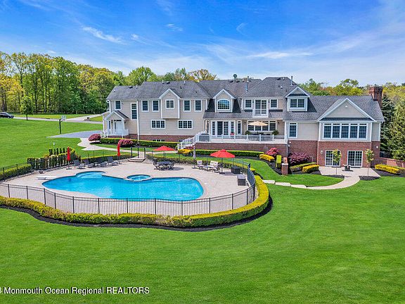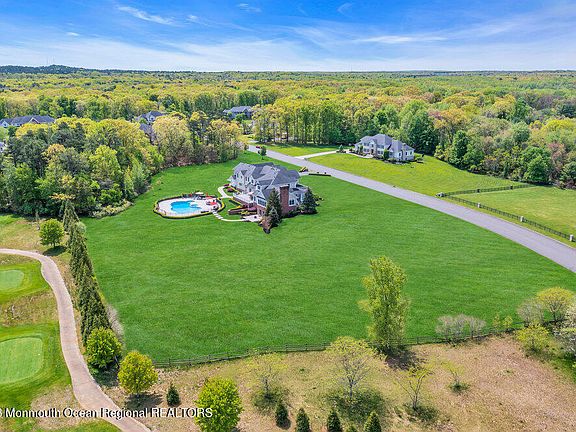 An extraordinary home for an extraordinary life! Palatial custom 5 bed, 7 bath estate situated on 4 acres of pure beauty with stunning views of an international golf course is sure to satisfy the most discriminating buyer. Careful selection & quality crafted appointments can be seen throughout. Natural sunlight fills the grand 2-story foyer with curved stairway. First level boast of elegant dining room with chair-rail, warm & inviting living room features one of three fireplaces, large study with decorative molding, bright home office with French Doors, spectacular great room offers wet bar & tray ceiling, mud room has custom storage unit & laundry room is complete with counters & sink. Gourmet designer eat-in kitchen features rich wood cabinetry, large center island, high-end stainless-steel appliances with full freezer & full refrigerator, skylight & butler's pantry. Magnificent primary bedroom is your very own private retreat with tray ceiling, balcony for morning coffee & large walk-in closet. Primary bath offers whirlpool soaking tube & beautiful tile work. All bedrooms are bright & tastefully designed with generous closet space. Oasis- like backyard features impressive patio, glistening pool, private & serene setting with breath-taking views surrounded by meticulously maintained landscaping. Home also offers expansive walk-out basement with full bath & large 3 car garage with separate bay for a golf cart. Living in Colts Neck is close to beautiful horse farms, beaches, parks & NYC transportation. For those seeking luxurious living this estate home will not disappoint you!