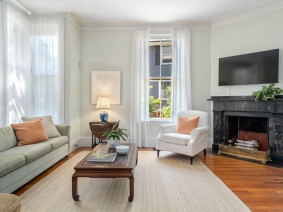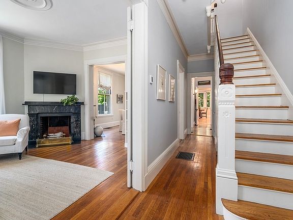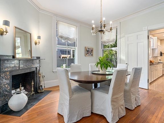 Enchanting Queen Anne/Stick-style row house, built in 1884. The home welcomes you into an inviting reception hall, leading to the formal living room & dining room. A large, renovated eat-in kitchen looks onto the private garden & terrace. Walking up the skylit staircase are 5 bedrooms and two updated bathrooms. Beautiful architectural detail, combined with modern systems, offer a special blend of character, history and comfort. 35 Brewster is one of four row houses and is on the National Register of Historic Places. Robert Frost, the American poet, author of “The Road Not Taken”, moved to Brewster Street at the beginning of World War II, with his border collie, Gillie. Privately situated on an idyllic residential street, one block north of Brattle Street, less than a mile to Harvard Square. Convenient to the Universities, Huron Village, restaurants and shops. Easy access to local schools, museums, the American Repertory Theater, Mt. Auburn Hospital, and all that Cambridge has to offer!
