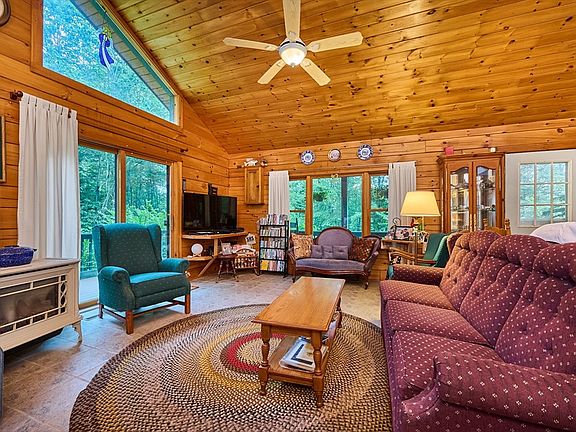 Tucked away in the woods, this well-cared-for log home offers peaceful living surrounded by nature. The light-filled interior features an open floor plan with a cozy gas fireplace in the living room, a dining area, and a spacious kitchen with an island—ideal for gathering. Step outside to enjoy the covered porch or the open deck, perfect for taking in the flowers, birds, and quiet natural setting. Three bedrooms and a full bath with laundry are conveniently located down the hall. The walk-out basement offers great potential for future living space. Additional highlights include a newer roof, a Generac on-demand generator, and propane forced hot air heat and hot water. Showings start at the open house Saturday 7/26 11:00am - 12:30 pm