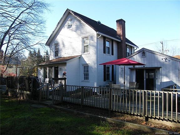 Well maintained in-town Colonial. Large Eat-in Kitchen. Front to back Living Room with decorative fireplace. Enclosed front porch. Family Room addition with sliders to large deck overlooking private backyard with scenic rock outcroppings. First floor bath and laundry. Three bedrooms and a full bath upstairs. The walk-up attic is partially finished and makes a nice hobby room or home office. Central AC. New 50 year roof. One car detached garage with workshop. Convenient to town, schools, and CT River.