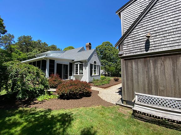 Wonderfully maintained home on a quiet dead end street, just over a mile to Cape Cod Bay. This 3 bedroom 3 bath Cape has cathedral ceilings, a light bright open layout, 3 season room and detached 2 car garage with large studio space and full bath above. Professionally landscaped on just over a half acre this home is the perfect year round or summer home.