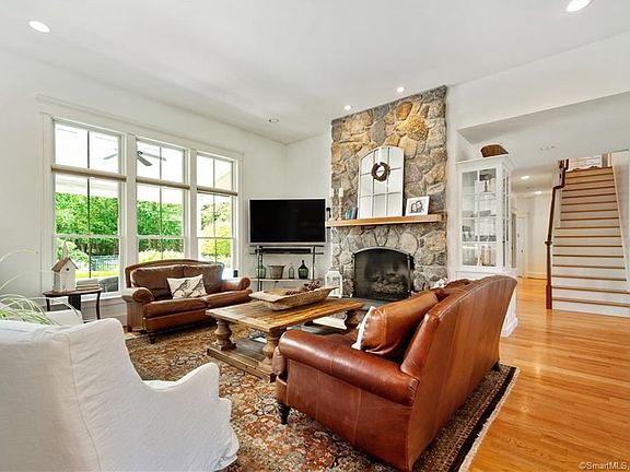 Tremendous curb appeal & Impeccable condition! This luxury home has white oak floors in main areas, 9ft + 11ft ceilings, oversized windows, upgraded carpentry and quality touches. The cook will love this kitchen - large island, stylish cherry cabinets, a suite of SS appliances + skylighted eating area! A grand sized mud room boasts walk-in closet, pantry, half bath + home office w/pocket doors. A fieldstone fireplace anchors the living room + formal dining room w/open transom door frame disperses natural light. Completing the 1st floor - impressive master en suite + sauna, den/4th bedroom and laundry room. Second level includes 2 good sized bedrooms, a full bath w/6ft tub and a playroom. Extra Interior + exterior living spaces - 4 season sunroom w/wet bar, spacious heated patio w/covered built in grill + dining areas and certainly the Gathering Place w/separate heating/cooling, honed granite at counter seating w/wet bar+ full bath welcomes you to relax or enjoy your entertaining lifestyle. A beautiful private oasis on a level lot, inground heated pool w/pool shed, hot tub, 4th car/barn, fenced vegetable garden and a treehouse are some of the extras! Please view the Feature Sheet for this Home Sweet Home!