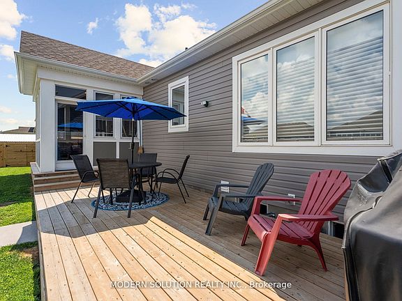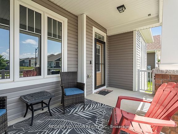 Stunning and extensively upgraded. 2-bedroom + Den, 2-bathroom bungalow located in the desirable White Pines community. The open concept layout features 9' ceilings throughout the main level, creating a bright and inviting ambiance at this property! Upgraded Hardwood & Tile throughout. Ideal for family-oriented living, it boasts a generous backyard complete with an Inground Pool! This home is conveniently situated within walking distance to the Sportsplex and local schools. Enhancements include: a high-end custom kitchen with seamless upgrades, Custom Closet in Primary Bdrm with addt'l closet, Automated blinds throughout, Upgraded Lighting, Muskoka Rm glass windows, Quartz Counter tops, Fully insulated/drywalled Garage with door to house, Electronic Air Cleaner, Humidifier, Central Air, storm door and back gate.
