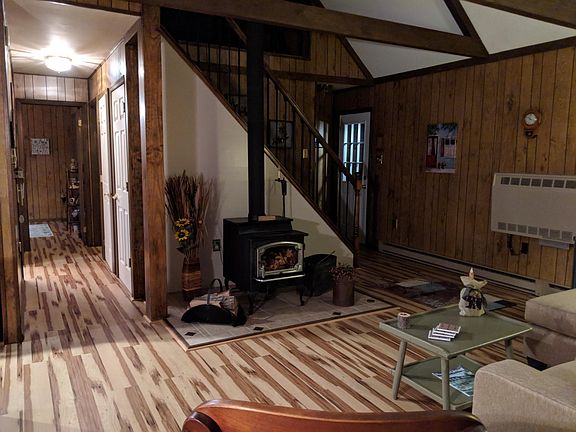 Charming chalet with an open floorplan in Towamensing Trails. Walk to the lake and clubhouse! Newer features of this home include a split-system HVAC system (heating & cooling), roof, hot water heater, all flooring, and water filtration system. Other heat sources are propane and electric baseboard. The large renovated bathroom includes a double-sink vanity, jetted tub, and a laundry area with washer/dryer. The main level has a kitchen (with breakfast bar), living room, dining area, and 2 bedrooms. The huge loft can be a bedroom + family room. For storage, there are many closets and a shed. The semicircular driveway allows parking for 3+ vehicles. The community has 24/7 security. Amenities: 190-acre lake, beach, swimming pool, playground, boat dock, tennis courts & more. Renter is responsible for propane, electric, cable/internet, snow removal and lawn maintenance. Garbage is included but renter needs to drop it off at the front of the development.