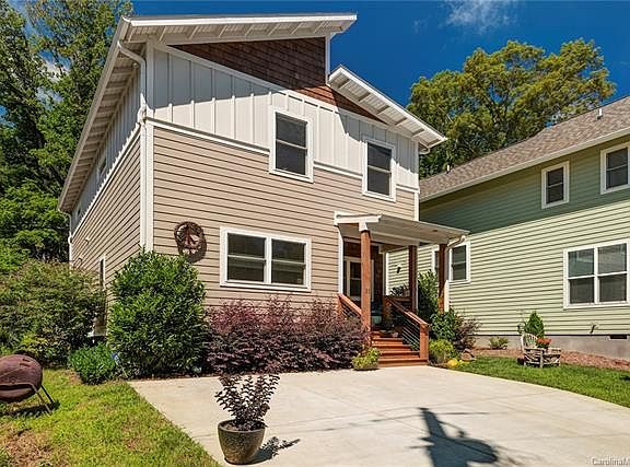 Contemporary living in the heart of West Asheville in a community of newer and well-loved homes. The open floor plan and generous backyard deck offer a wonderful home for entertaining and easy living. The lower level features one great room and a half bath; gourmet kitchen, quartz countertops, island cooking and dining, and a gas log fireplace. A glass rear wall opens directly onto a stained deck with stainless cable rail, landscaped backyard, and upper patio. Dark hardwood floors complement with the gray and steel color scheme on the lower level and a stainless steel cable railed stairway leads to the upstairs level. Upper level has three bedrooms, with tiled baths upstairs. Upstairs Master has lots of light, large bath with tiled walk-in shower. Jack and Jill layout for additional bedrooms on the second level with the Master Suite. Dining room in photos conveys, not currently installed one.