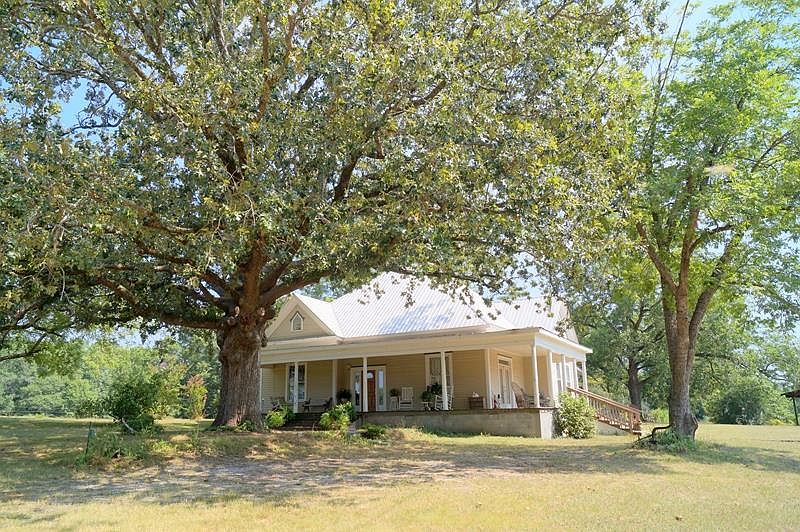 QUIET COUNTRY SETTING - CHARMING, CIRCA 1900 FARM HOUSE ON 5 ACRES! Take a step back in time when visiting this home. A 100+ year old oak tree greets you as you ascend the front steps and walk onto the large front porch. Original hardwood flooring & mouldings throughout the home. Gorgeous fireplaces in nearly every room give a nostalgic feel. Formal parlor, foyer, and dining room have lots of windows. Eat-in kitchen with island leads to the large laundry room. Screened porch/sunroom overlook the rear acreage. Bead board ceiling in Library & behind drop ceiling in most rooms. Original wood barn/storage with overhang. Separate large 4 vehicle carport with very large fully equipped workshop including iron stove and full house fan. Workshop a separate office, bathroom and fully insulated. Metal roof on house in 2005 and on garage/workshop/carport in 2020. Two metal open livestock shelters in pastures. Water to pastures with troughs. Orchard with numerous bearing fruit trees including apples, pears, peaches, plums and huge bearing pecan trees. A fertile farm!