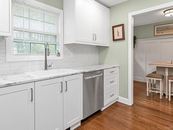 This beautifully maintained property offers 3 spacious bedrooms and 2 full bathrooms, blending classic character with modern updates throughout. Step into a brand-new, thoughtfully designed kitchen featuring stainless steel appliances and adjacent to the kitchen, a stylish high-top table provides the perfect space for casual dining or everyday meals. A formal dining room adds to the home’s charm, offering a warm and welcoming setting for family dinners and special occasions. The home is filled with character, offering hardwood floors, recessed lighting, elegant moldings, and a warm, inviting atmosphere throughout. Recent improvements include a newer roof, siding, gutters, and furnace, providing peace of mind for years to come. A partially finished basement offers flexible space for a home gym, office, or extra storage. Step outside to a fully fenced backyard with a patio, perfect for outdoor entertaining. As a bonus, a spacious roof deck offers the ideal setting for morning coffee, sunset views, or summer nights under the stars. The property also includes a 1-car garage, offering extra storage or parking convenience. This move-in ready gem blends classic charm with modern upgrades and is located close to schools, parks, shopping, and transportation. Don't miss your chance to own in one of West Islip’s most sought-after neighborhoods!