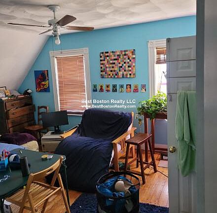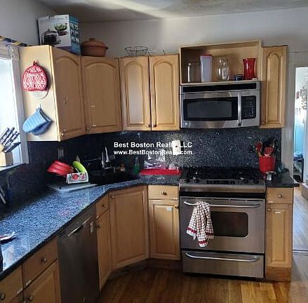 Davis Square Closest train = Davis Square (Red Line) 4 bed/2 bath (split-level unit, 2nd and 3rd floor) Hardwood floors Modern eat-in-kitchen Separate living room Private front deck Shared rear yard Coin-op laundry machines in basement Driveway parking available for rent Availability: January 1, 2025. 1 year.
