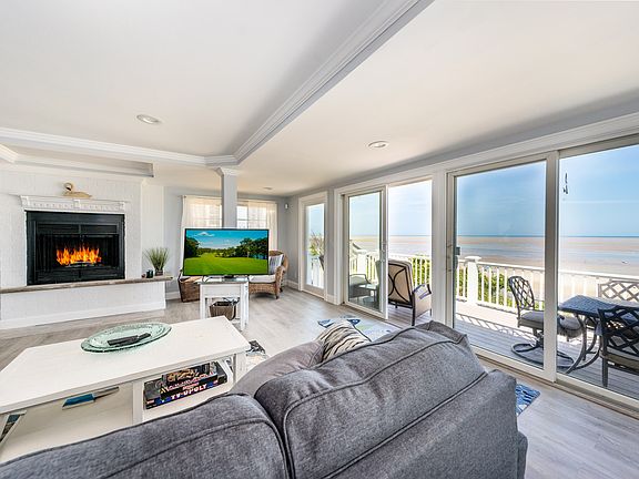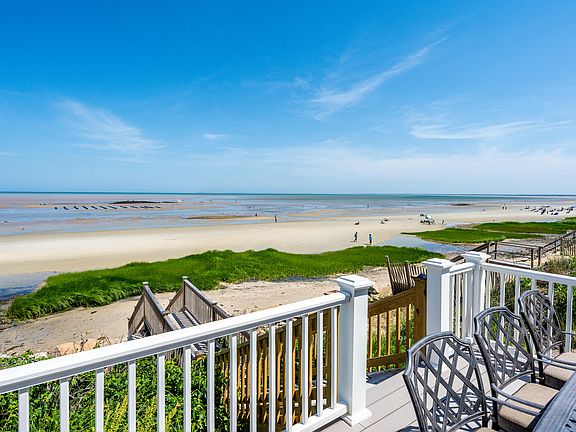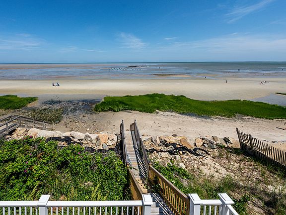 STUNNING...the Sunsets will leave you breathless. Beachfront with PRIVATE stairway on Brewster Flats Beach. Better than new, Luxury Rebuild in 2020, Inside & Out. Large open Living Area with Gas Fireplace and a wall of windows...Spectacular Views. Chef's Granite Kitchen with gas range and stainless steel appliances, beautiful cabinets. CORETec engineered floors. 2nd floor offers luxurious Primary Bedroom with gas fireplace overlooking Cape Cod Bay, Full Bath, and additional Bedroom. Quality throughout, the owner has spared no expense to make this an absolute Beachfront Luxury Residence. Offered well below replacement cost, rare opportunity...Carpe Diem!
