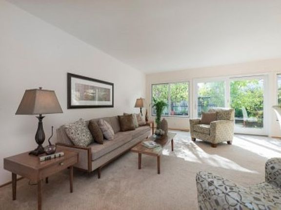 This one-of-a kind contemporary split-level 'center hall' plan home is situated in a premier location at the end of a private lane. Welcoming parquet entry and beautiful hardwood floors throughout the upper level hallway and bedrooms. Sunny and open living/dining area overlooks the large wrap-around Mediterranean style garden with mature fruit trees. Spacious 10,200 square foot lot provides a perfect canvas for the person who loves to garden. Two cozy wood-burning fireplaces in the living/dining area and in the sunny family room/kitchen. Attached two-car garage with separate laundry room, plus two bonus rooms. Freshly painted throughout the interior and exterior. Conveniently located with easy access to Hwy 280 and nearby Clifford elementary school.
