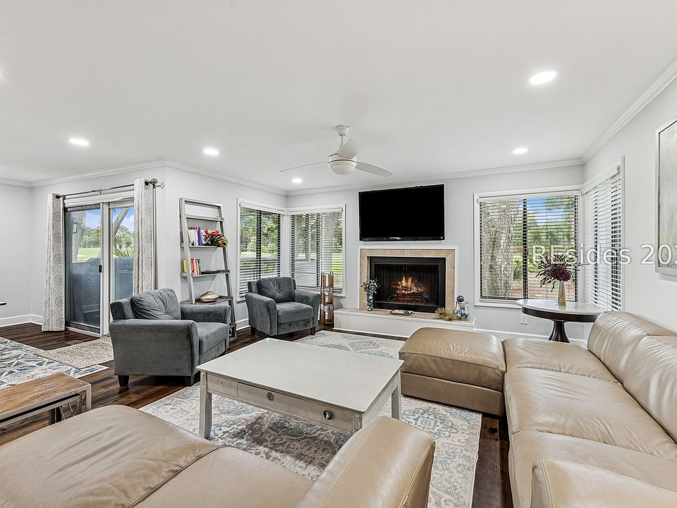Welcome to 56 Fazio! This updated 3-bedroom, 3-bath end-unit Fazio Villa offers a rare combination of move-in-ready condition, exceptional privacy, and peaceful surroundings, all with picturesque views of the 18th fairway in the heart of Palmetto Dunes. Tucked away from through traffic, this quiet end unit lives more like a private retreat. From the moment you walk in, the care and attention are evident. Freshly painted with smooth ceilings and new engineered plank flooring throughout, the home feels bright and refined. The open floor plan flows beautifully and is filled with modern upgrades, including stainless steel appliances and a cozy fireplace.Whether you're looking for a primary residence, second home, or strong rental, this villa checks every box. It comes fully furnished with new furniture, dining tables and chairs, comforters, pillows, new beds, and stylish ceiling fans, everything you or your guests could need. Ample storage is offered with a walk-in attic, pull-down attic, and a convenient storage shed off the service yard.Enjoy morning coffee or evening cocktails on the rear deck overlooking the golf course, surrounded by the added privacy that only an end unit can provide. A short, safe bike ride brings you straight to the beach. The Fazio complex features a wonderful pool area, ample parking, and beautifully maintained landscaping. You're also just a stroll from golf, tennis, Shelter Cove, restaurants, shopping, and the Palmetto Dunes General Store.Opportunities like this are few and far between. This quiet, private end-unit villa is a must-see, with too many updates to list. Come experience the best of coastal living on Hilton Head Island.