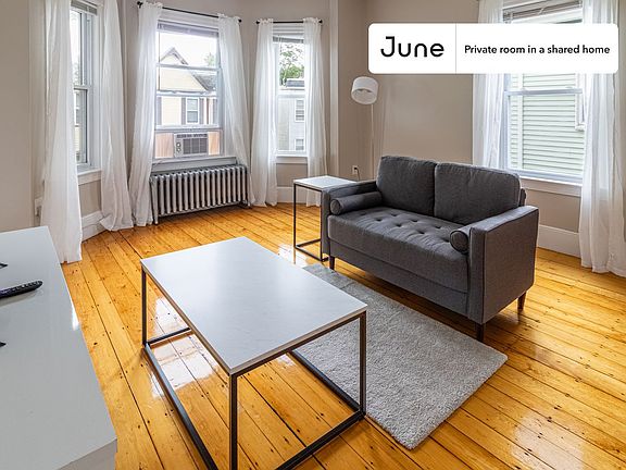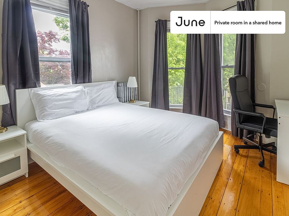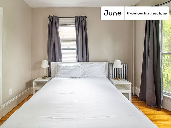 This Queen room in Roxbury is available on a 12 month lease or a flexible short term (31 to 364 days) lease. You pick your custom start and end date. Monthly rent rate is determined by furnishing preference, move-in date and move-out date. Speak to a June representative for recommendations on the best stay duration for the lowest rate.