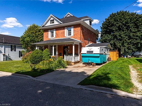 Charming 2.5 storey century home nestled on a tranquil street in the heart of Markdale. If you've been dreaming of a place where history meets modern comfort, look no further. This picturesque property has it all! Inside, find new hardwood floors throughout the main level. Relax in the living room with a stone fireplace or the family room addition with a natural gas fireplace. The large kitchen is a chef's dream, boasting granite countertops, a spacious island, new cupboards, & newer appliances. Additional main level features include a mudroom equipped with electric heated floors, a 2pc bathroom, & a closed-in carport that leads to a welcoming three-season insulated sunroom. On the second level you'll find three generously sized bdrms & a 4-piece bathroom. Laundry day becomes a breeze with the convenience of a laundry room on this floor. The primary bdrm, tucked away in the attic, offers a private retreat filled with charm. Upgrades include 200 amp electrical service & a new furnace. Enjoy the comfort of natural gas forced air heating & central air cooling throughout the seasons. Step outside to your own oasis on the 0.163-acre lot with gorgeous perennial landscaping. The backyard is fully fenced, perfect for pets and/or kids! Entertain friends & family on the large back deck or impress them with homemade pizzas from the brick pizza oven. Cozy up around the fire pit or utilize the spacious storage shed for all your outdoor equipment. Markdale, often referred to as the centre of Grey County, is a vibrant & growing town. All your essential amenities are just a short walk away, & exciting news awaits with the New Markdale Hospital scheduled to open by the end of 2023. This recreational area is perfect for adventurers. Enjoy hiking, snowmobiling, cross-country skiing, golfing, ATVing, swimming, boating, canoeing, cycling, hunting, & fishing in the breathtaking natural surroundings. Schedule a showing today!