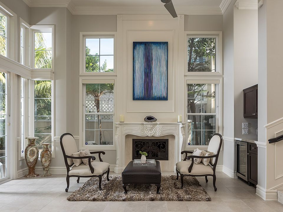 - InteriorFeatures: Recessed Lighting, Built-Ins, Stone Counters, High Ceilings (9 Feet+), Open Floor Plan, Crown Moldings, Chair Railings, Wainscoting